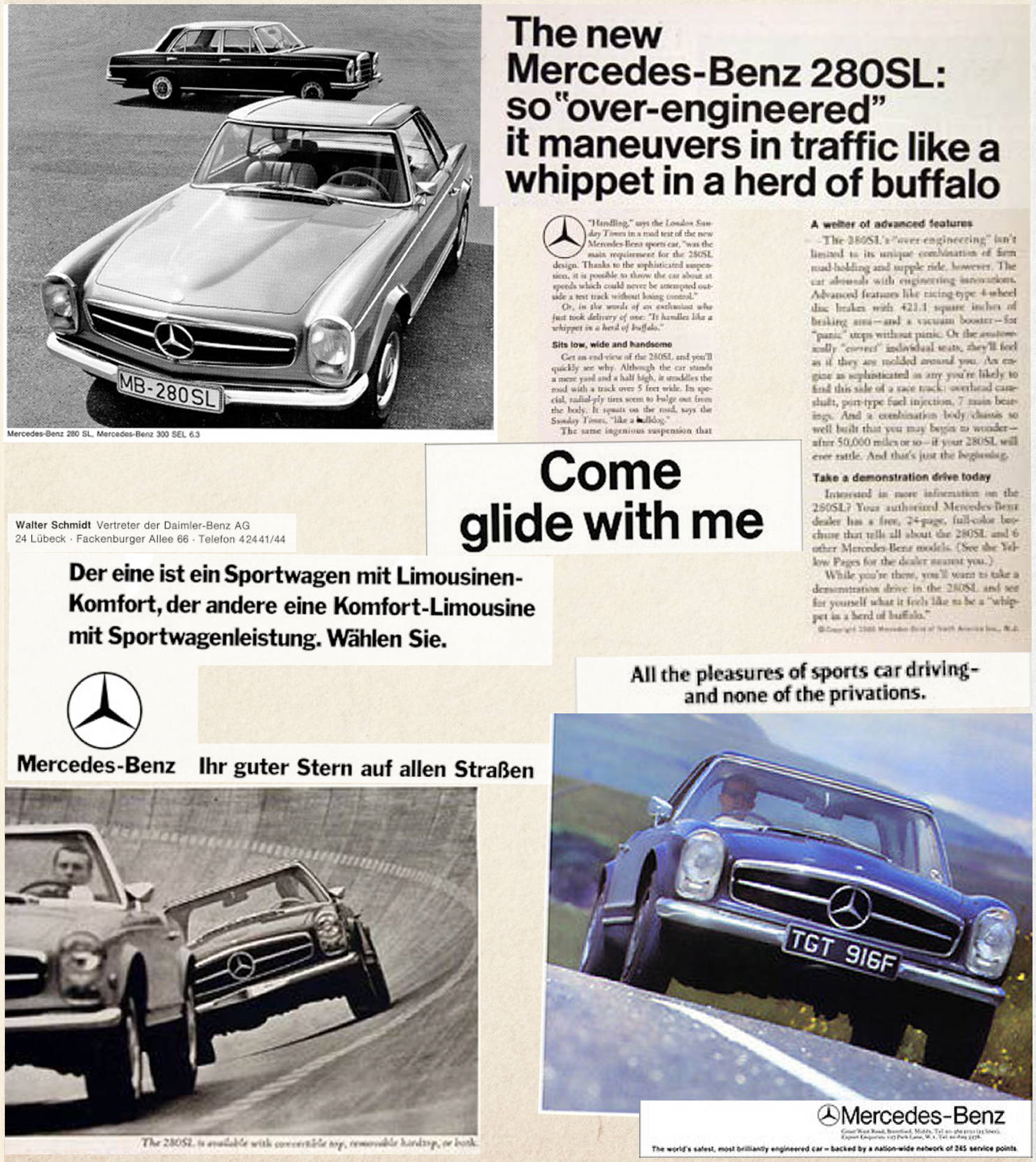 The chassis was based on the W111 sedan platform, due to the popularity in it’s stylistic characteristics, yet the car sported a reduced wheelbase, by 11.8inches. They have a double wishbone front suspension and an independant single-joint. The cars also feature recirculating ball steering, with optional power steering, as well as low pivot swing rear axle with transverse compensator spring.